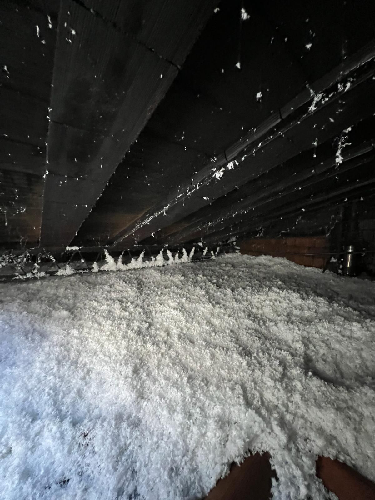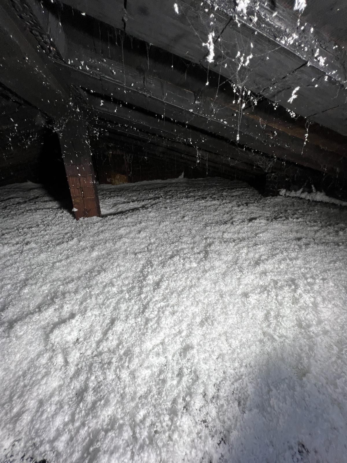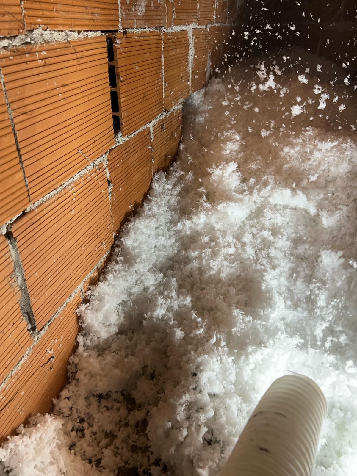 L'attrezzatura di insufflaggio soffia il materiale isolante nella zona sotto il tetto. È necessario lavorare in modo meticoloso per arrivare in ogni angolo e assicurare un isolamento completo.